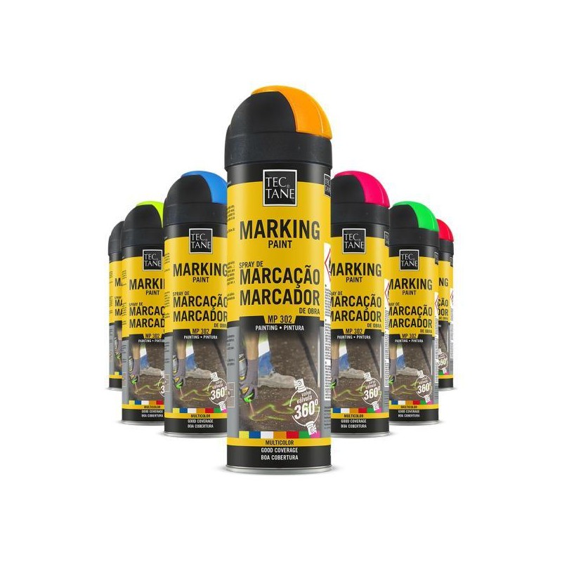 Spray de pintura fluorescente para marcações temporárias. resistente a temperaturas até 150ºc. seca em 5 minutos. pode aplicar-se sobre superfícies húmidas e remover-se facilmente com água quente ou acetona.
