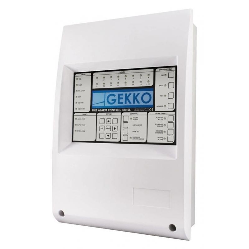 o painel gekko é um sistema endereçável, expansível de 1 a 4 laços. alojado numa nova caixa de plástico abs, onde somente dois parafusos são utilizados para fechar e fixar a tampa.