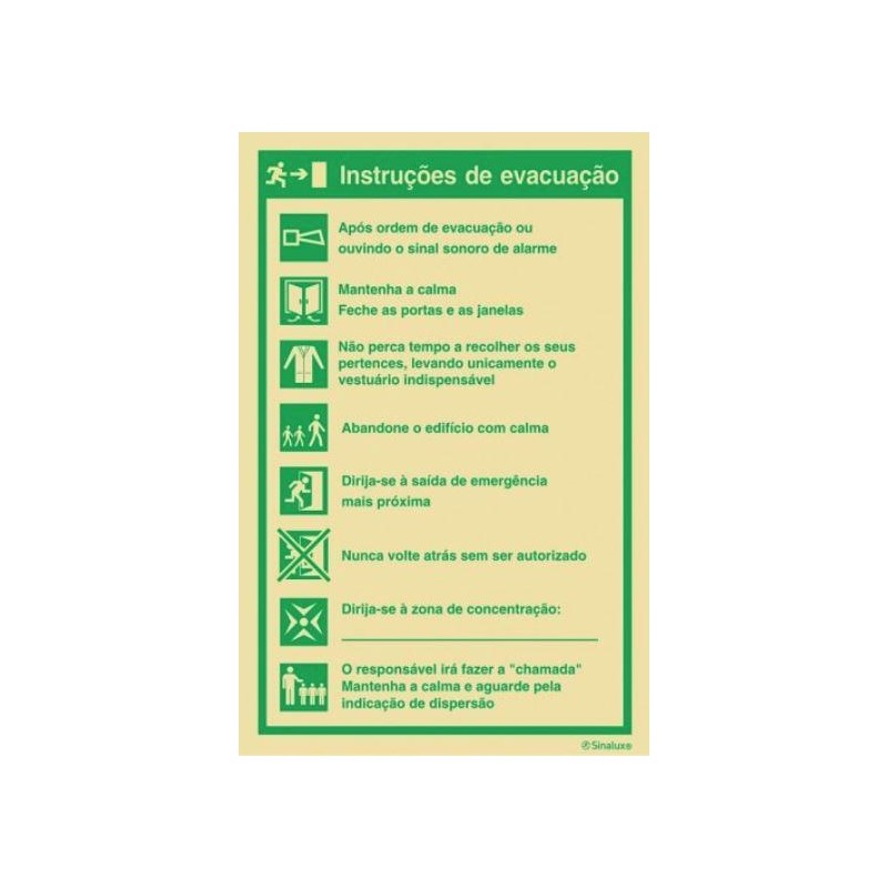 Sinal sinalux 2030 tipo 1 nº p1087 instruções de evacuação
