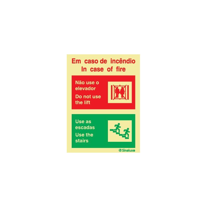 Sinal sinalux p0612 150 x 200 - em caso de incêndio / in case of fire