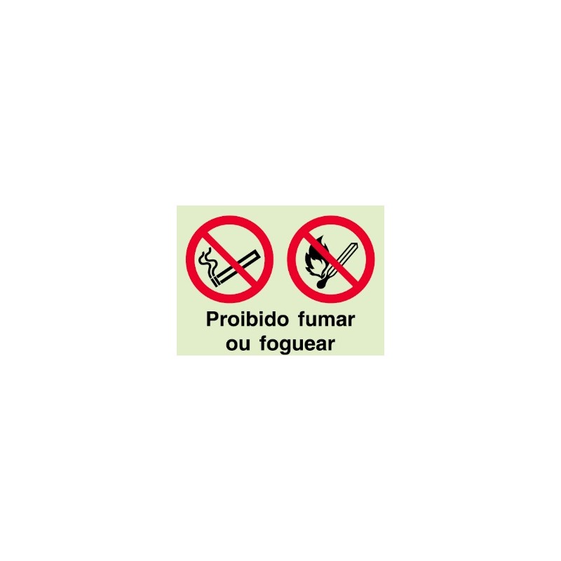 Sinal fotoluminescente simples co5728 450x300 mm - proibido fumar ou foguear